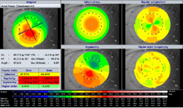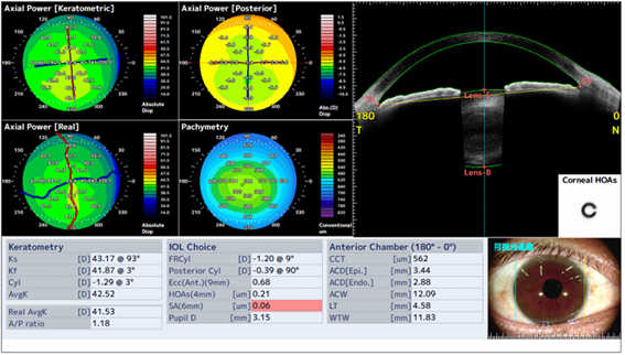 白内障術前検査にて角膜の不正乱視の有無をチェックし、多焦点眼内レンズに適用があるかどうかの情報を提供します。